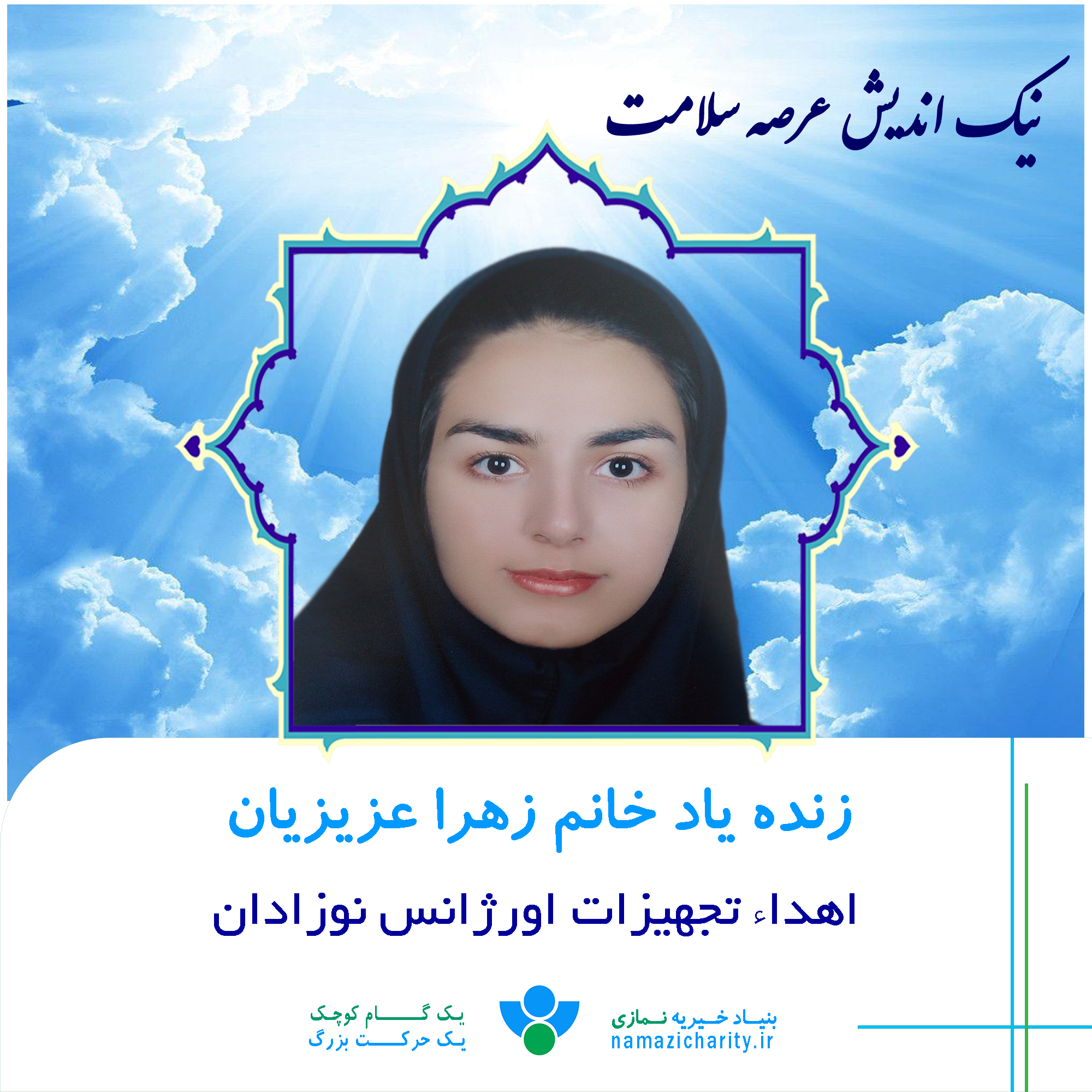 این اقدام خیر توسط سرکار خانم فاطمه صفری به یاد دخترشان زنده یاد خانم زهرا عزیزیان صورت گرفته است...